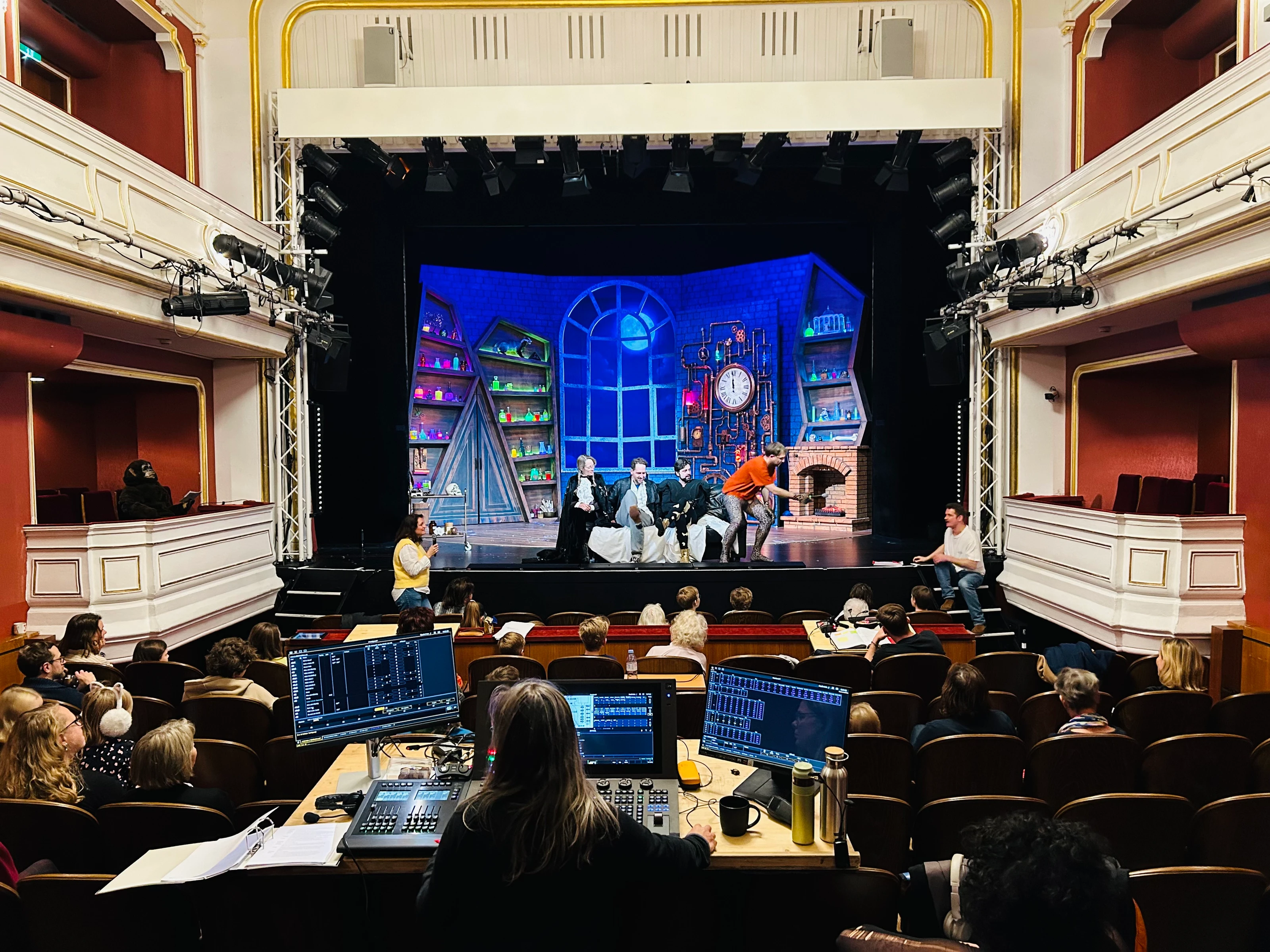 Bevor es zur Probe ging, begann der Nachmittag mit einem klassischen Aufwärmspiel Die Kinder, begleitet von ihren Familien, durften bei der Probe dabei sein, Fragen an die Schauspieler*innen stellen und sogar eine Geldrequsite mitnehmen. Nach dem exklusiven Einblick in die Probe gab es Kakao, Kaffee und Kuchen und eine spielerische Nachbereitung der Szenen mit dem Team der Theatervermittlung.